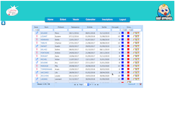 Application Web de gestion d'une crèche. Contrôle des vaccins et des visites médicales. Gestion des taux d'occupation des différents groupes (bébés, moyens et grands).